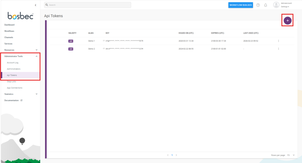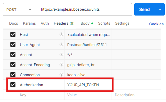 Store the API token securely. It provides authenticated access to your Bosbec environment and should not be exposed in client-side code or shared publicly.