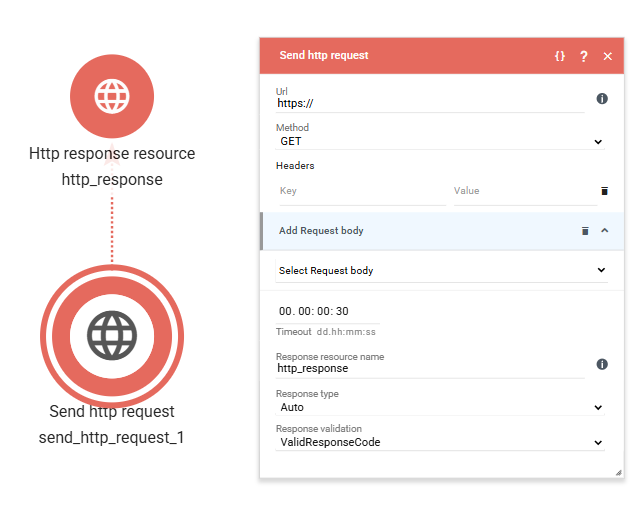 This field defines the name of the response resource that will store the result of the HTTP request.