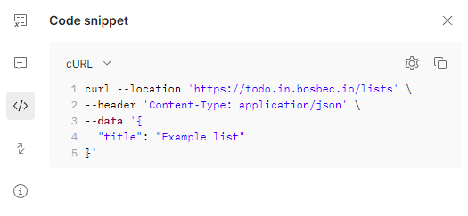 From Postman, you can also export a code snippet and copy the request. Copy the requests you have already implemented in your workflow and add them to your README.md file.